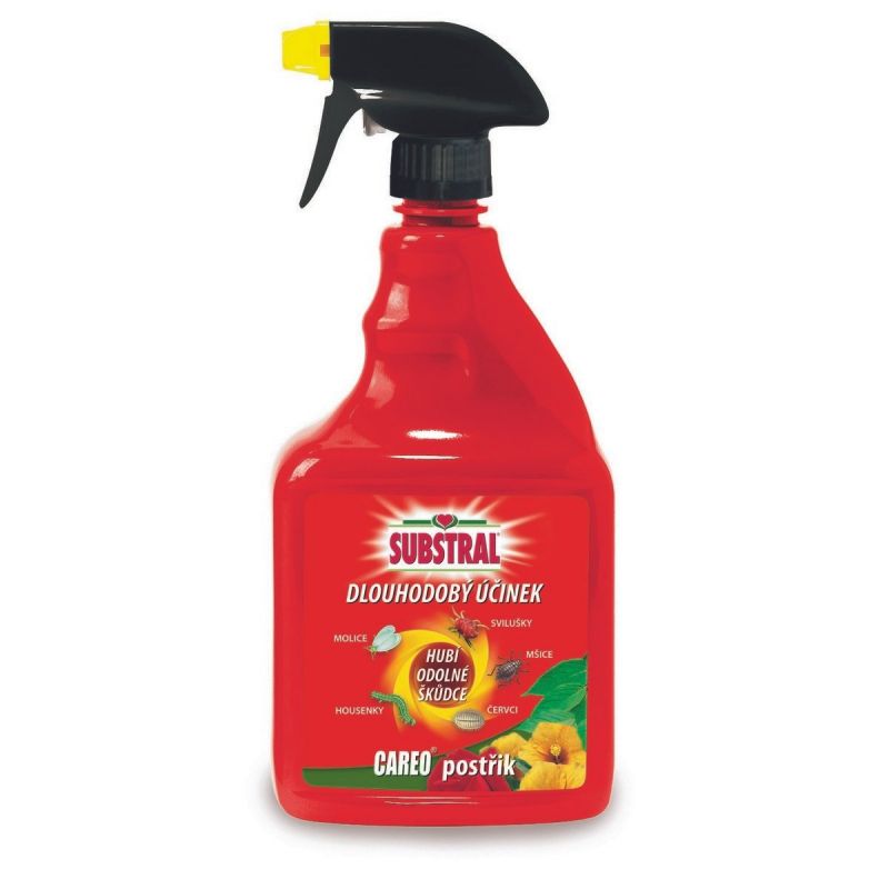 Postřik CAREO proti škůdcům likviduje savé a žravé škůdce, jako jsou mšice, třásněnky, molice, štítenky, červce, svilušky, stejně jako brouky, housenky, vrtalky aj.